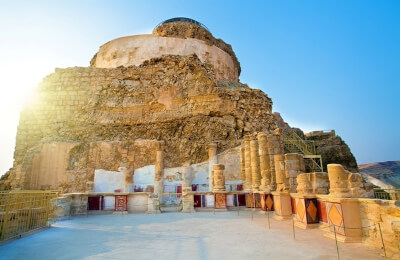 Гора Массада с крепостью на её вершине расположена неподалёку от Мёртвого моря. Крепость достигла особенного расцвета в те годы, когда в ней обосновался царь Ирод, бежавший из Иерусалима. В период его правления был построен роскошный дворец, укреплены городские стены, усовершенствована система водоснабжения. Также были найдены развалины древней синагоги. В 73 году нашей эры Массаду окружили римляне. Защитники крепости понимали, что не смогут долго сдерживать натиск противника, и было принято страшное решение. Из числа воинов было выбрано десять человек, перерезавших горло всем жителям крепости. После, из их числа, жребием был выбран один воин, убивший всех остальных, а после покончивший с собой. Ворвавшись в крепость, римляне увидели практически нетронутые запасы продовольствия и воды, оружие и... мёртвых защитников и жителей.