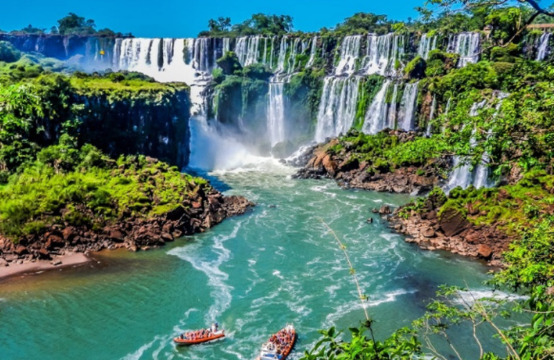 Завтрак в отеле и трансфер в аэропорт. Перелет в Игуасу, где вас встретит шофер. Трансфер в отель. Водопады Игуасу, насчитывающие 275 водных потоков, поражают своей мощью и величием. Смотрите на "Горло дьявола" и наслаждайтесь красотой природы, стоя у самого водопада.